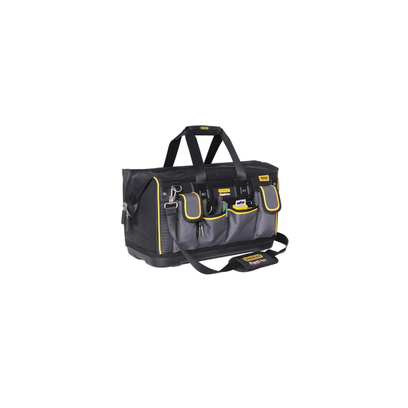Made of durable materials for internal protection against possible damage to tools,Injected polypropylene base protects contents from dirt or moisture on the ground,Large opening design with power tool zone and internal pockets,Vertical storage pockets for quick and easy access to all tools and small parts,Ergonomic design with padded shoulder strap and rubber grip.