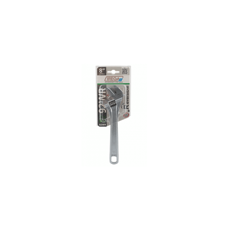 Reversible jaw for working on pipes,Extra capacity,Double scale: millimetres on the front, inches on the back,Professional multi-purpose adjustable wrench, can work on any object with a cylindrical shape,IREGA 100% Quality guaranteed,A reversible jaw with extra capacity allows you to work on larger diameter nuts and pipes with the same adjustable wrench.