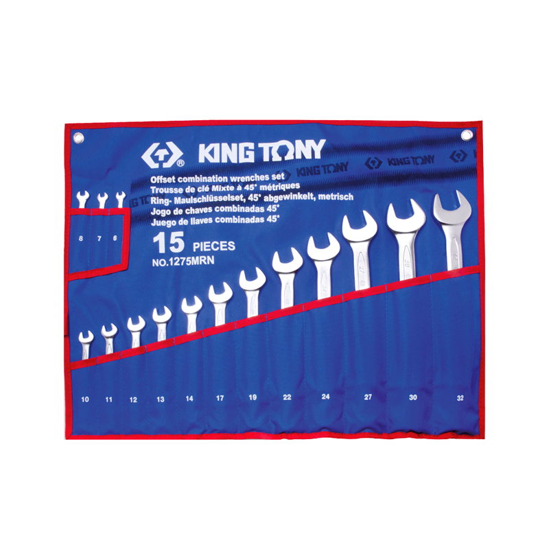 KING TONY 15 Piece 75° Metric Combination Wrenches Set 6-32mm Polyester pouch |