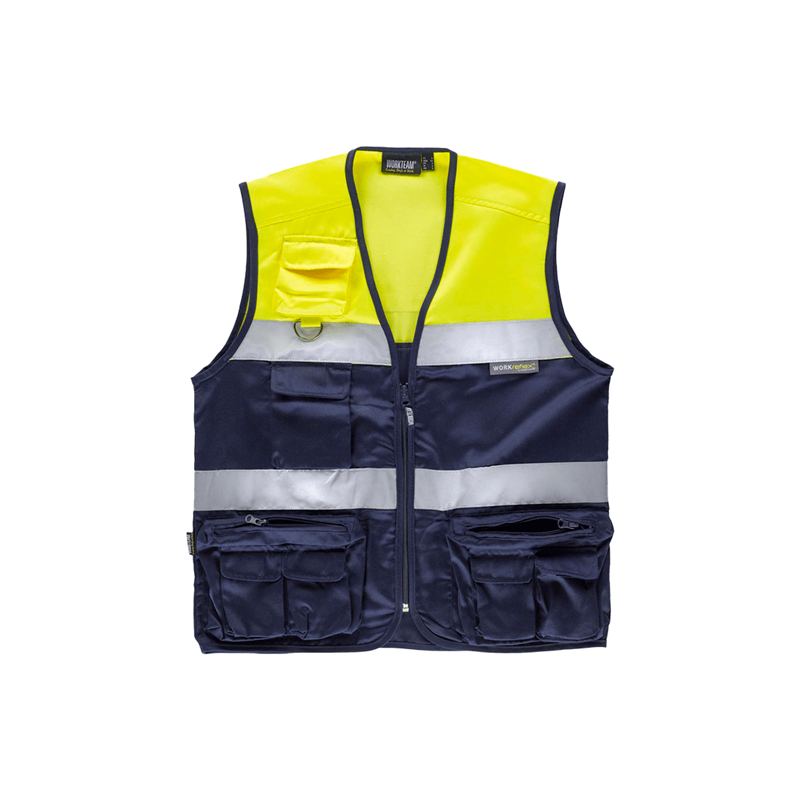 Description- Safari-type waistcoat combined with reflective strips. |