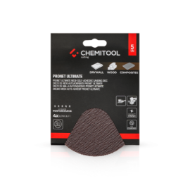PRONET ULTIMATE CHEMITOOL self-adhesive sanding discs in mesh format have been specially developed to provide extraordinary workability due to their resistance to abrasion, as well as the special composition of aluminium oxide and silicon carbide, increasing durability by up to 4x compared to a traditional sanding disc.
