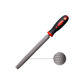 The CHEMITOOL Half-Round Coarse Cut Carpentry Rasp with Bi-Material Handle is a tool specially used for grinding and roughing work on other workpieces. The different shapes and finishes of the rasps make them suitable for specific jobs.