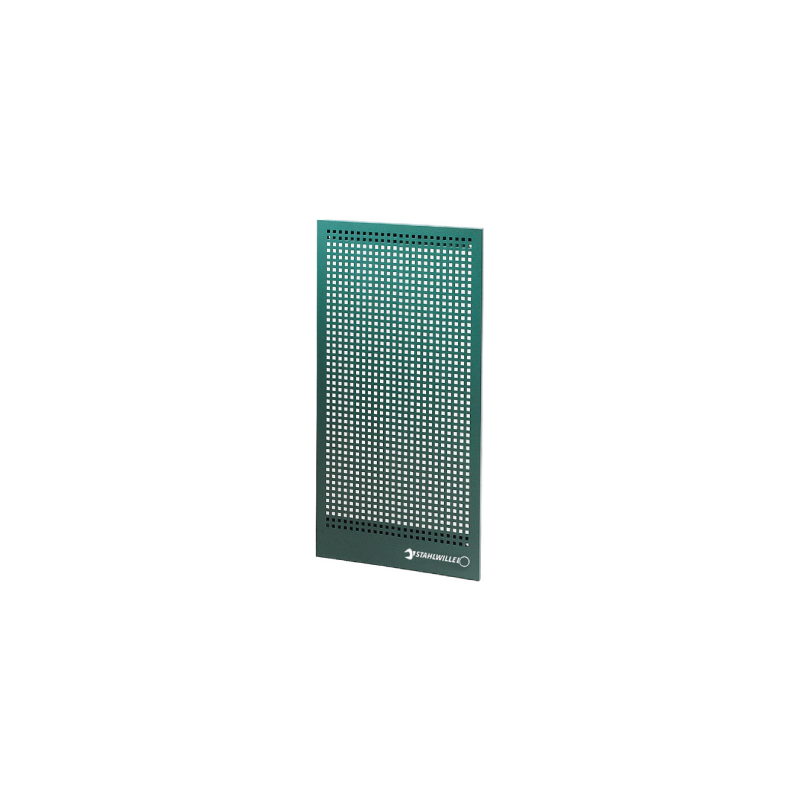 - Perforation 9 x 9 mm, made of sturdy, 1 mm thick sheet steel, with 2 strengthening ribs at rearmm
