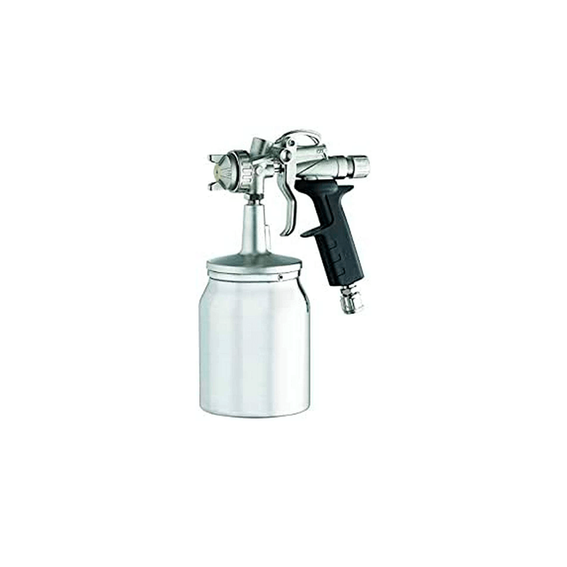 - Paint spray gun with 1000 cc bayonet-type aluminium suction feed cup; - Sandblasted and nickel-plated aluminium lid; - Feed cup suction pipe in zinc-plated steel ø10x7; - 11/A connector for spray gun air supply; - Packaged in a box with service spanner for maintenance operations.