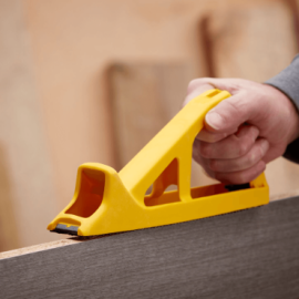The STANLEY SURFORM 270mm Moulded Body Plane is designed for fast and controlled material removal on a variety of surfaces. It features a replaceable 250mm standard-cut Surform blade that allows users to shave, shape and smooth materials such as wood, plastics, laminates and soft metals. The lightweight moulded polypropylene body provides durability while remaining comfortable to handle during use.