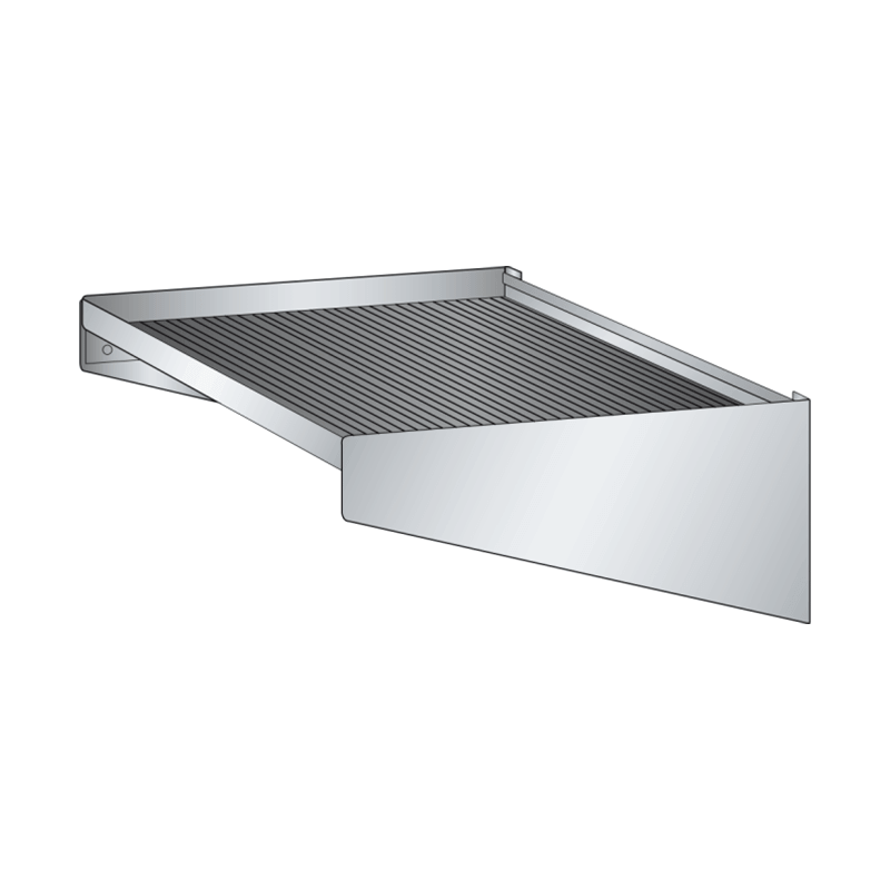 Shelf: for storing measurement and accessory tools. Can be screwed onto front of 36 x 27 E transport unit. Includes black PVC ribbed mat and fixing material. Specification: sheet steel. Colour: according to colour chart.