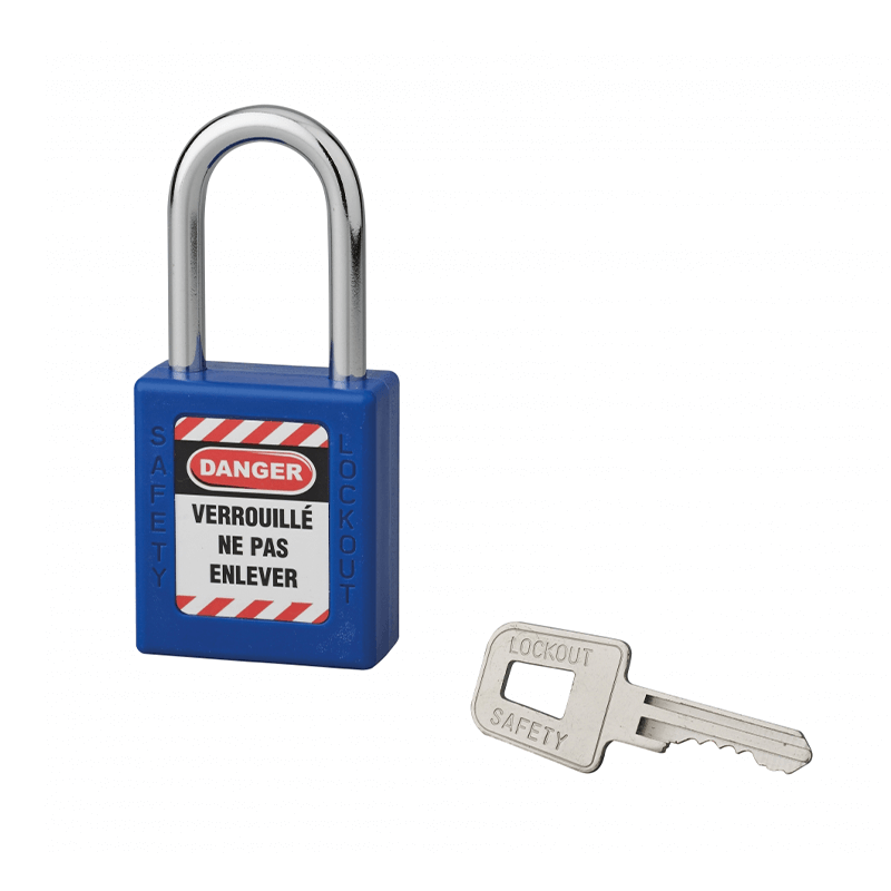 Non-conductive ABS body.hardened steel arch pin mechanism. Double anchorage. Key lock: The padlock must be closed to pick up the key.