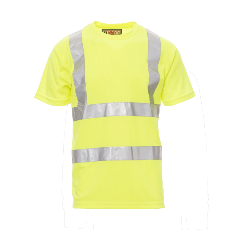High visibility AVENUE CHEMITOOL T-shirt with reflective tapes, a close-fitting neckline, short sleeves and taped seams.