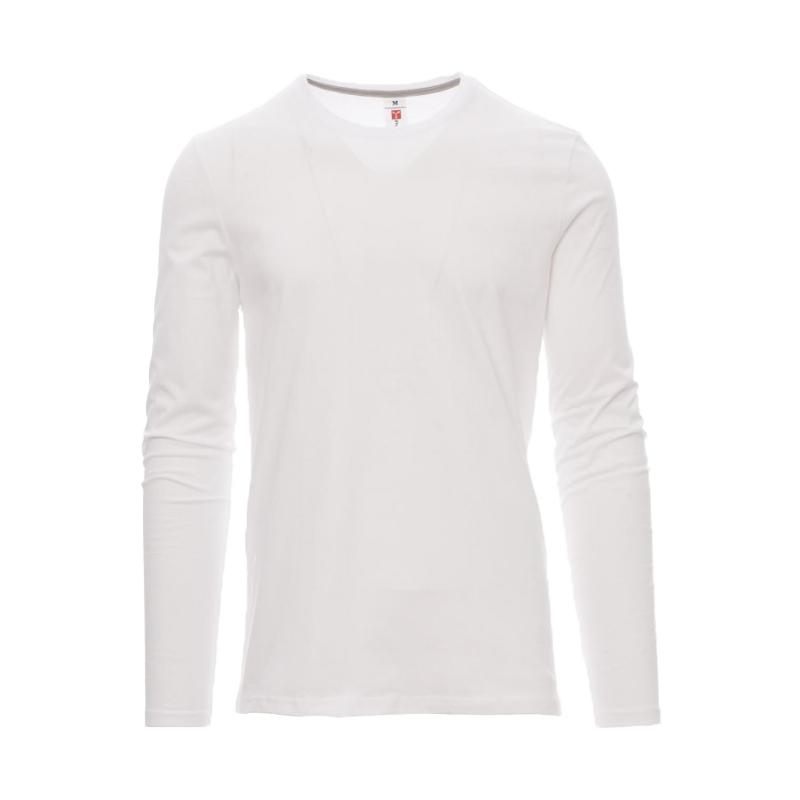 PINETA CHEMITOOL men's round neck and long sleeve t-shirt, with 1.5 cm spandex mixed ribbed collar band and top seam at front, contrasting shoulder to shoulder reinforcement strip visible on inner collar, elasticated hems, side seams.