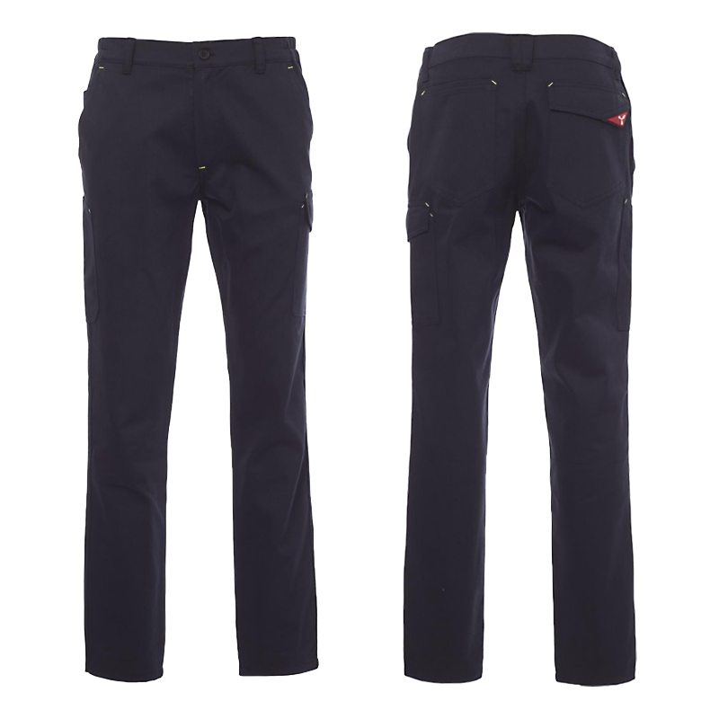 POWER STRETCH CHEMITOOL trousers with belt loops and elasticated waist, zip and button fastening. Triple reinforced stitching between legs , double needle side seams, two classic pockets on the front, small coin pocket, right side metro pocket. Left side pocket with LOCK SYSTEM closure pallet, two back pockets one of which one with pallet and velcro.