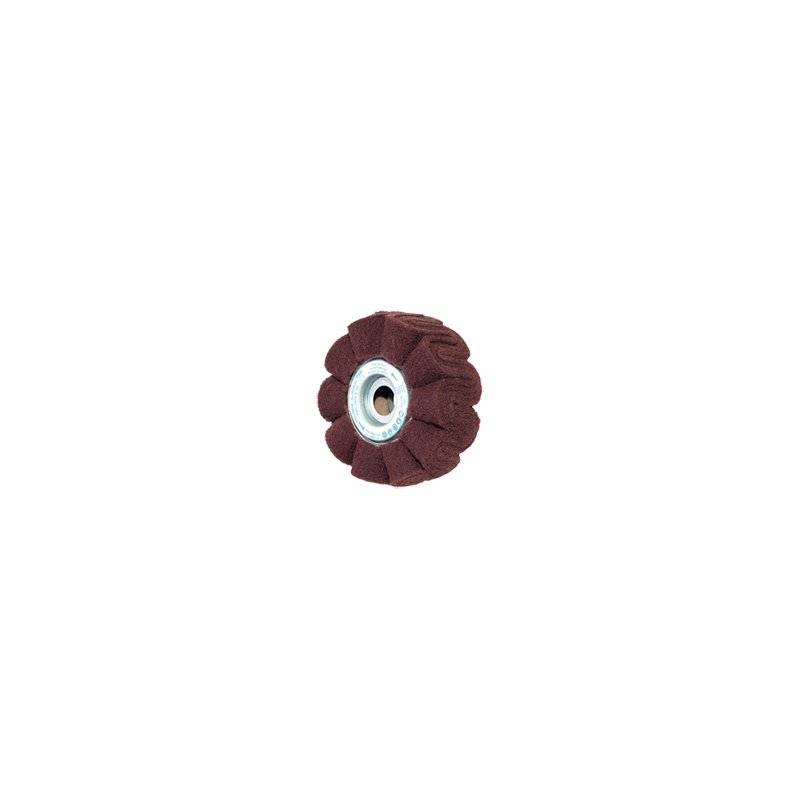- Made of several very wavily arranged strips of non-woven abrasive material, wound around a core.