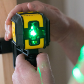 The DEWALT DCE0825D1G 5 Spot Cross Line Laser Green projects a full cross line (horizontal & vertical) and 5 independent spot points. The cross line function features a 150 fan angle, providing ample coverage with little set-up time. It has an integrated magneticbracket, so it can be directly mounted to metal track, ensuring accurate projections all around. The body of the level is IP54 rated, meaning it is resistant to debris/water. The overmolded housing and thick glass protect the tool and helps maintain calibration under jobsite conditions.
