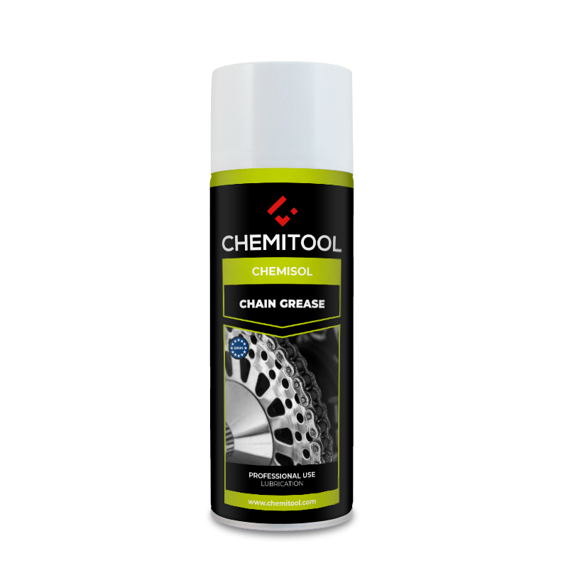 Apply the chain spray in a thin layer.During the initial flow phase, when the spray can penetrate the chain, it has foaming effect. Better lubrication is obtained after solvent evaporation.