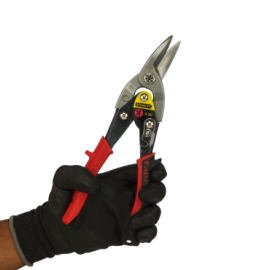 The STANLEY FatMax 250mm Left Compound Cutting Action Aviation Snips, ideal for straight cuts and left-leaning curves in sheet materials and thin metals. Compound action and serrated blades provide clean, controlled cuts with minimal effort.