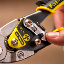 The STANLEY FatMax 250mm Straight Compound Cutting Action Aviation Snips is designed for precise sheet material cutting with reduced effort. Its compound action and serrated blades ensure clean cuts even in tougher materials.