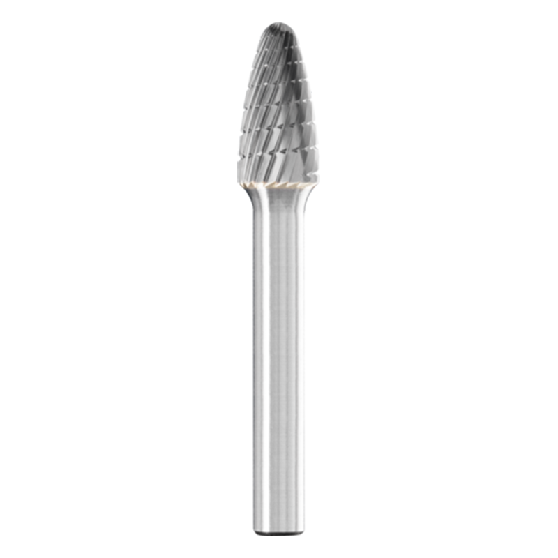 The tungsten carbide burr has three types of cutters based on DIN8033 standard, cross cut (universal use), single cut (use for finishing) and spaced single cut (aluminum use).