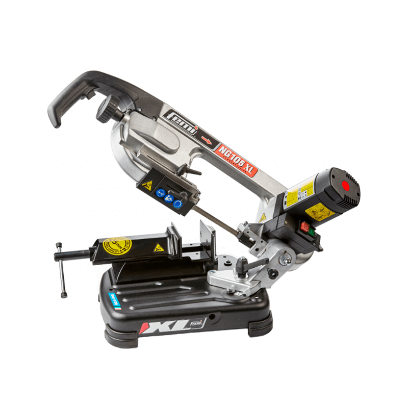 Sierra de cinta de última generación con el exclusivo sistema NG. El tiempo de corte se reduce hasta un 35% en comparación con una sierra convencional gracias al sentido de rotación contrario de la cinta de sierra. Incorpora un innovador dispositivo tensor de la cinta de sierra patentado con embrague deslizante y ofrece dos velocidades de corte. La capacidad de corte es de hasta 105 mm. Funciona con un motor de 950 vatios con protección contra sobrecarga. Permite cortes a inglete de hasta 45°.'Potencia del motor: 230V / 950 vatios