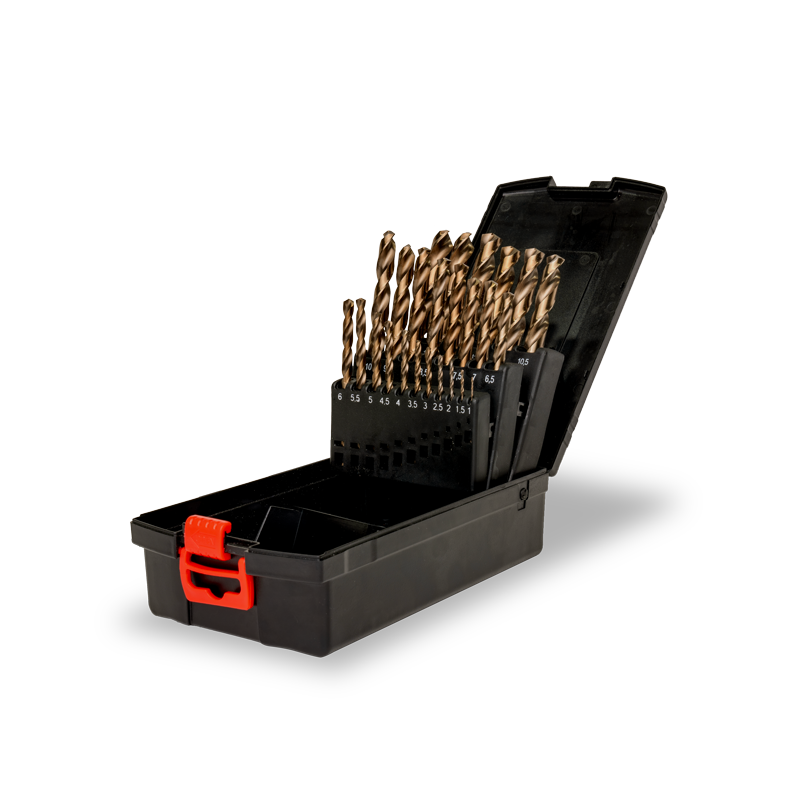 El Juego de Brocas Espirales Rectificadas DIN 338 HSSE-G M35 (5% Cobalto) CHEMITOOL fueron desarrolladas sobre cuidadosos procesos de fabricación, para proporcionar al profesional una excelente relación de calidad y rendimiento en la perforación de metales.