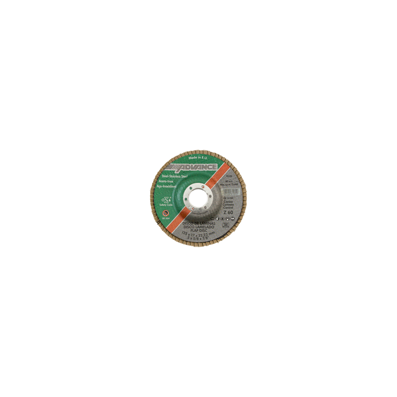 - Abrasivo: Corindón de Circonio Z y Corindón A;