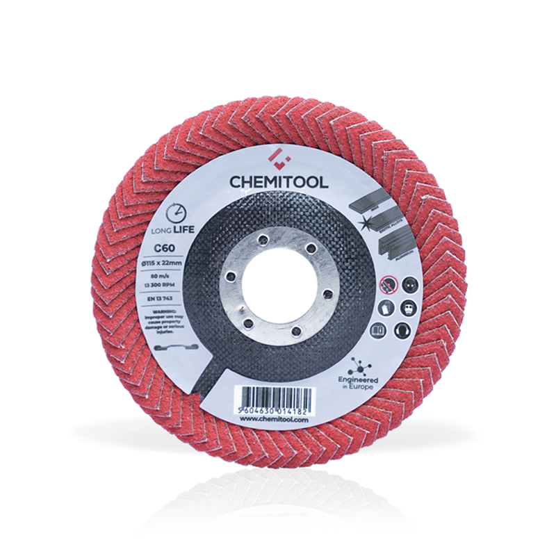 El Disco de Láminas ALL-ROUND Grano Cerámico CHEMITOOL es perfecto para trabajos que requieren una gran cantidad de desbaste, especialmente con un acabado superficial fino. Con la innovación ALL-ROUND, este disco le permite trabajar en cordones de soldadura y aprovechar al máximo el material abrasivo.