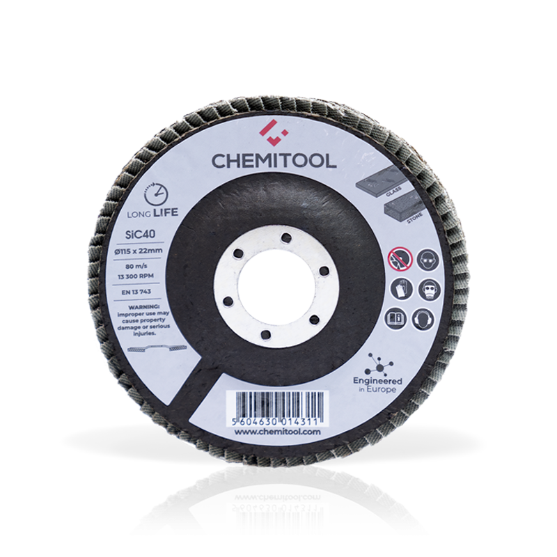 El Disco de Láminas Grano Carburo Silicio (SiC) CHEMITOOL fue desarrollado para uso profesional en varios tipos de materiales. De forma cónica, con desbaste agresivo y un alto nivel de eficiencia.