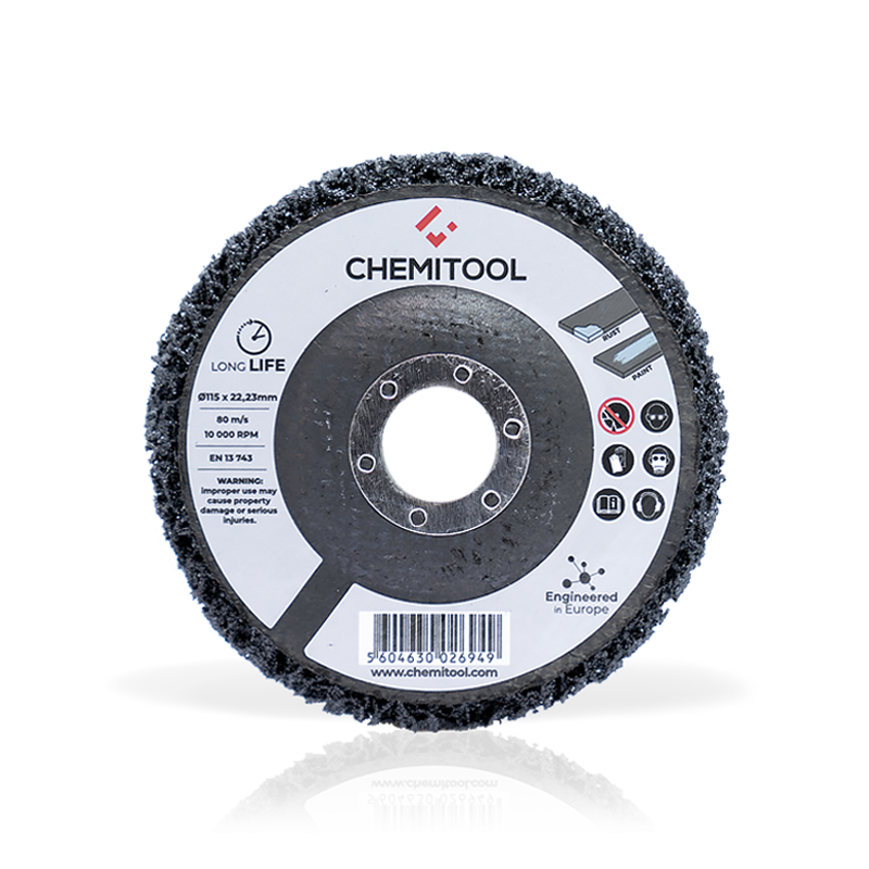 El Disco de Limpieza Chemitool es adecuado para trabajos de limpieza más gruesos, como eliminación de pintura, incrustaciones, decoloración por calor, óxido y residuos de pegamento.