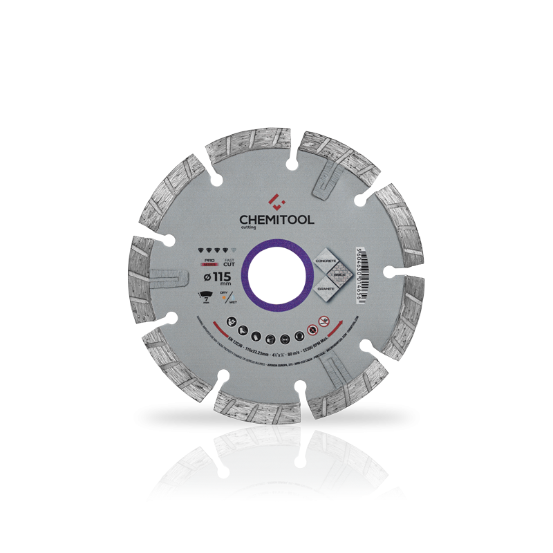 Disco de Diamante Segmento Reforzado Plano Ø230x22,23mm CHEMITOOL CUTTING- Segmento reforzado de 7mm de altura;