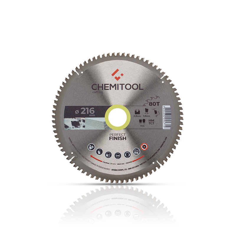La hoja de sierra circular CHEMITOOL es compuesto por dientes de carburo de tungsteno de alta calidad soldados en un proceso automático. El cuerpo de la hoja de sierra y las ranuras de expansión se cortan con láser para proporcionar robustez y precisión evitando la deformación con el fin de obtener una gran relación calidad/valor.El principal rasgo de esta hoja de sierra circular para melamina y multimaterial es la perfección del corte y la capacidad de cortar diferentes tipos de materiales. La geometría del diente TCG (Diente Trapezoidal + Diente Plano) junto con la forma de la hoja permite a este tipo de hoja cortar perfiles y sólidos como la melamina, el aluminio y el plástico.