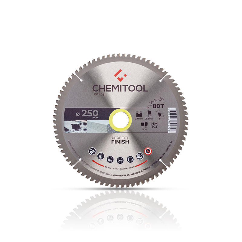 La hoja de sierra circular CHEMITOOL es compuesto por dientes de carburo de tungsteno de alta calidad soldados en un proceso automático. El cuerpo de la hoja de sierra y las ranuras de expansión se cortan con láser para proporcionar robustez y precisión evitando la deformación con el fin de obtener una gran relación calidad/valor.El principal rasgo de esta hoja de sierra circular para melamina y multimaterial es la perfección del corte y la capacidad de cortar diferentes tipos de materiales. La geometría del diente TCG (Diente Trapezoidal + Diente Plano) junto con la forma de la hoja permite a este tipo de hoja cortar perfiles y sólidos como la melamina, el aluminio y el plástico.