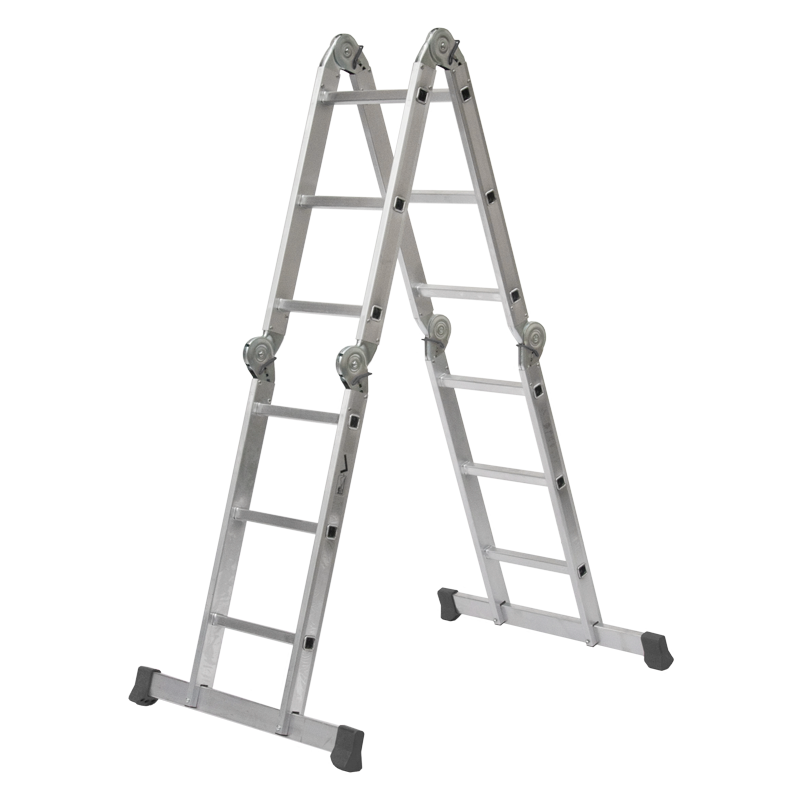 Las escaleras polivalentes de aluminio permiten varias posiciones de uso: plataforma, banco de trabajo, escalera y escalera de mano.