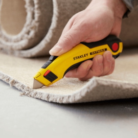 Cúter 155mm STANLEY con Cuchilla Retráctil Lateral- Cuchillo retráctil con deslizador lateral: Ideal para tareas de corte diarias.