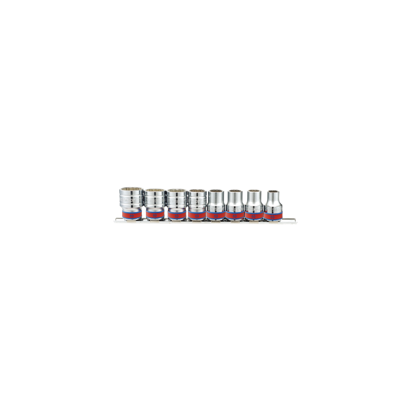 Juego de llaves de vaso estriadas para trabajar con accesorios manuales.