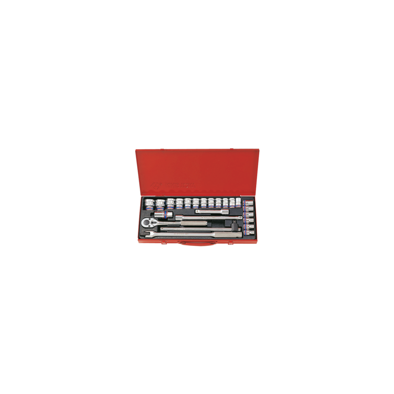 Especificaciones:- 18 casquillos 12 lados 8, 10, 11, 13, 14, 15, 16, 17, 18, 19, 20, 21, 22, 23, 24, 27, 30, 32mm- 2 varillas de conexión- 1 palanca de sujeción inversa- 1 palanca de sujeción automática- 1 cabezal giratorio- 1 palanca de tornillo en T.