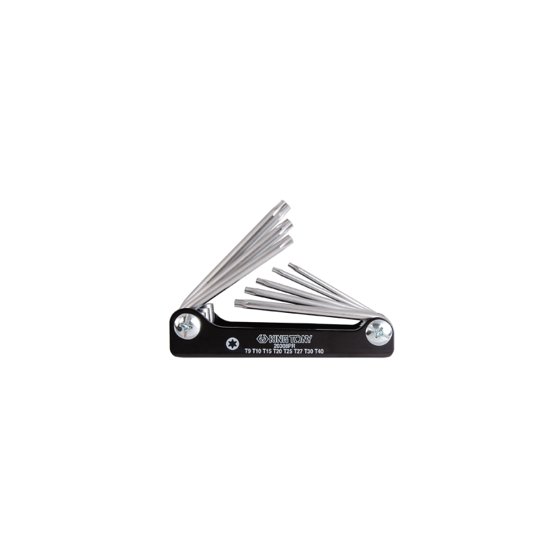 Juego de llaves Torx,Cuerpo de acero de alta resistencia,Fabricado en acero al cromo-molibdeno-vanadio,Acabado superficial cromado,8 Piezas:T9, T10, T15, T20, T25, T27, T30, T40.