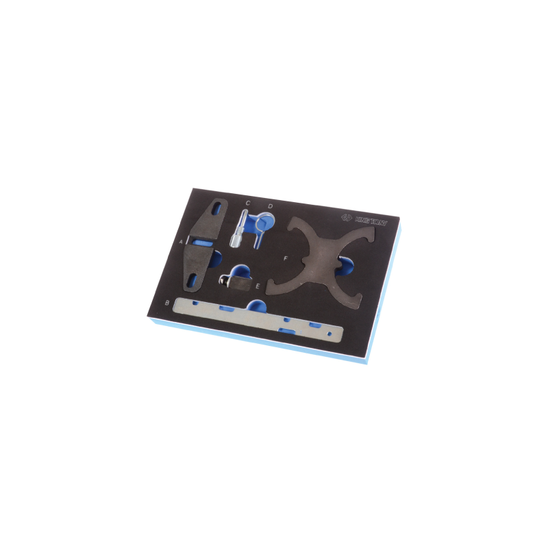 El juego incluye la placa de ajuste VCT, la placa de ajuste del árbol de levas, el pasador de la posición TDC del cigüeñal, el pasador del tensor y las herramientas de bloqueo del volante, Actúa para el motor de gasolina Duratec 16v. para FORD 1.6 de doble árbol de levas VCT-Ti, Se utiliza para ajustar la sincronización VCT en el árbol de levas de admisión y de escape durante la sustitución de la correa de distribución.