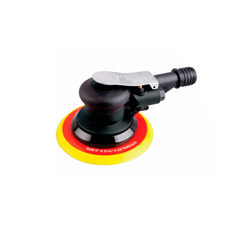 Rectificadora/pulidora excéntrica con conexión al absorbedor/succión. Diámetro del disco 152 mm. Velocidad 10000 RPM Conexión de aire 1/4. Presión de trabajo 6,2 BAR. Consumo de aire 85 l/min. Emisión de ruido 81,6 DBA. Vibración: 1,50 M/S2. Peso: 0,89 kg.