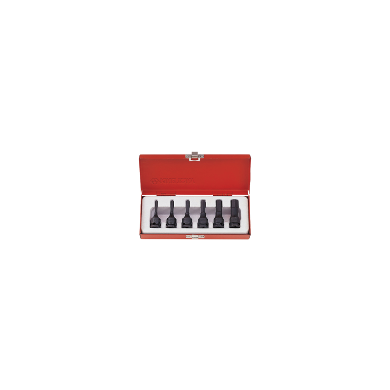 Juego de brocas de impacto hexagonales de 3/8 - mm - 6 piezas,Para tornillo de cabeza hexagonal,Longitud (mm): 55,Caja metálica,Tamaños: H4 - H5 - H6 - H8 - H10 - H12.