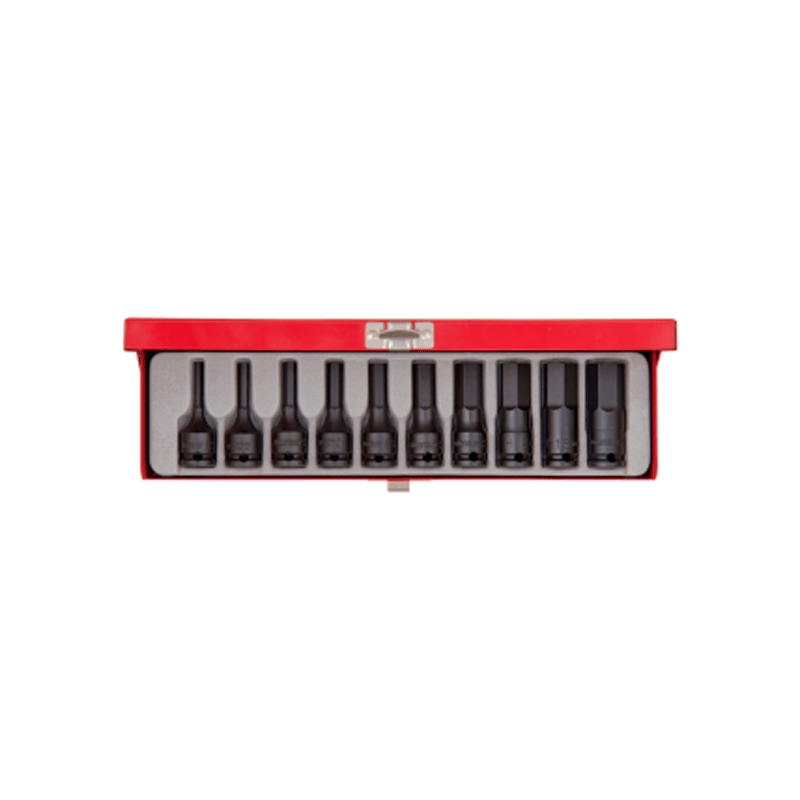 El juego incluye 10 vasos de diferentes tamaños para llaves neumáticas. Están fabricadas con acero de aleación de cromo-molibdeno de la más alta calidad, lo que las hace resistentes y duraderas. Además, gracias al tratamiento térmico, se ha reducido la fragilidaddel material con el que se fabrican y se ha obtenido una dureza adecuadamente elevada: son resistentes a los daños mecánicos y a lacorrosión.Tamaños: H4, H5, H6, H7, H8, H10, H12, H14, H16, H17.