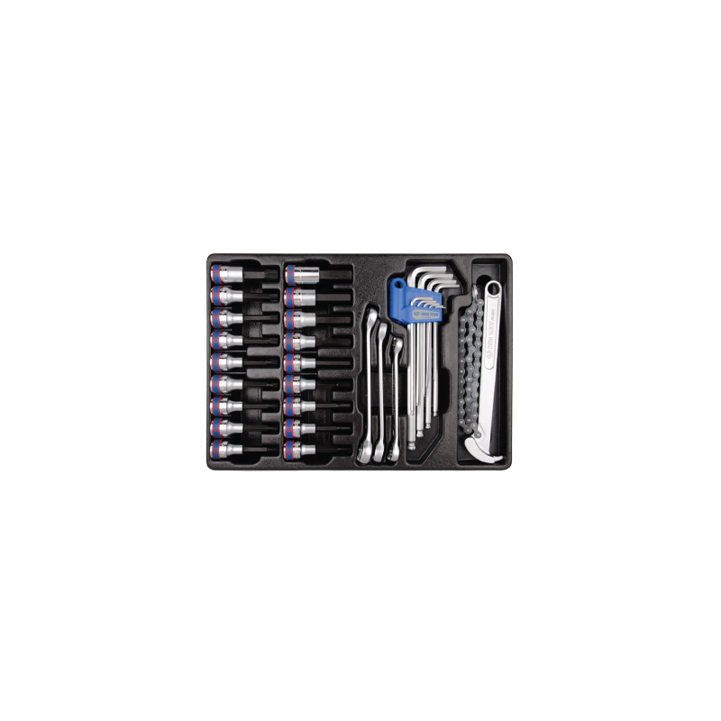 Los huecos son suficientemente profundos y las llaves permanecen en su sitio incluso durante el transporte. Este accesorio se utiliza junto con cajas de herramientas, armarios, carros, bancos de trabajo y otros sistemas de almacenamiento de herramientas que tienen cajones de tamaño adecuado. Compatible con la mayoría de cajas y carros de herramientas. La carcasa está hecha de plástico de altacalidad, tiene un diseño rígido, no es susceptible a los cambios de temperatura y otras influencias atmosféricas, gracias a lo cualdurará mucho tiempo.