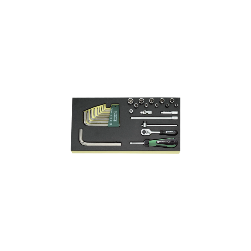 - La superficie de la espuma es de color negro y cada una de las molduras amarillo fluorescente, esto permite un perfecto control de todas las herramientas con un solo vistazo. Si no hay ningún hueco amarillo visible, todas las herramientas se encuentran en su lugar.