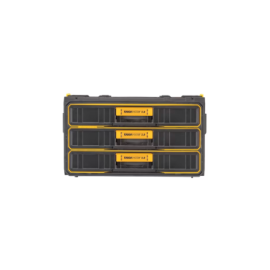 - GRAN CAPACIDAD DE ALMACENAMIENTO: 3 cajones para guardar herramientas y accesorios. - RÁPIDA APERTURA Y CIERRE - Las guías de los cajones accionadas por rodamientos de bolas permiten abrir y cerrar los cajones con gran rapidez y suavidad. - CÓMODA PORTABILIDAD - Transporte herramientas y accesorios con las resistentes asas laterales.