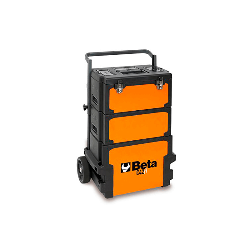 3 módulos desmontables: caja de herramientas superior, 220 mm de altura, módulo central, 180 mm de altura, módulo inferior con ruedas, 20 mm de altura.Ruedas de gran diámetro (ø160 mm), asa telescópica, ajustable en 3 posiciones. Sistema de liberación rápida de los módulos: acceso fácil y rápido a todos los compartimentos.Caja de herramientas superior con compartimento interior para herramientas y 3 bandejas integradas en la tapa.Sólo se puede utilizar con 2 módulos.Peso: 14 kg.Dimensiones: 730x540x320 m.