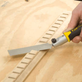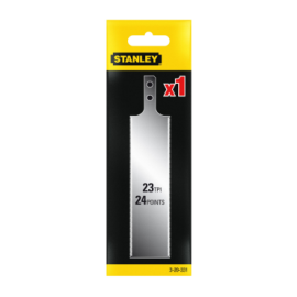 La STANLEY 3-20-331 es una hoja de repuesto para la sierra FatMax Flush Cut Pull Saw (modelo 0-20-331). Con 23 TPI y corte doble cara, permite serrar con tracción y realizar cortes al ras precisos en madera, cavilas y ensamblajes.