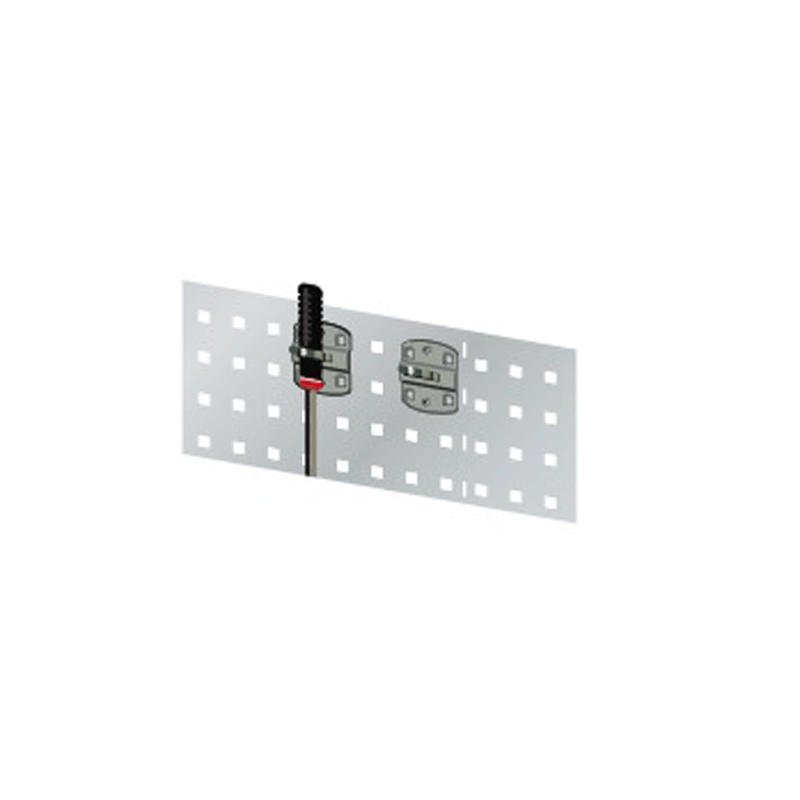 Los ganchos de bloqueo deben fijarse en su posición con el material de fijación suministrado. Color de los soportes: aluminio blanco, RAL 9006.