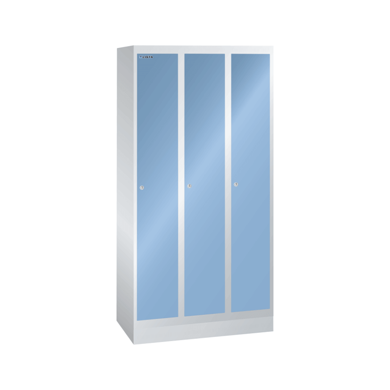 Taquillas: Según el compartimento y el modelo, las taquillas están equipadas con: puerta maciza de una hoja, empotrada, de superficie lisa o con campo perforado para ventilación adicional (1 compartimento con cerradura), 1 perchero para sombreros, 1 percha con 3 perchas deslizantes, 1 toallero.