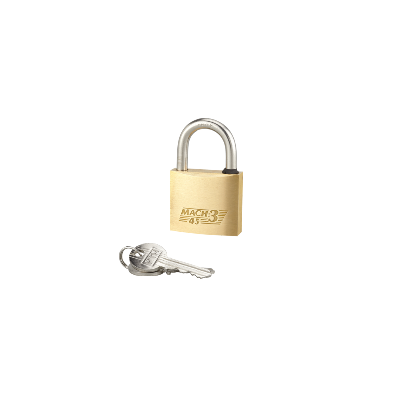 Cuerpo de latón monobloque. Arco de acero inoxidable.Mecanismo de pasadores. Doble anclaje mediante pestillos. Junta de estanqueidad. Orificio de circulación de agua. 2 llaves de acero niquelado.