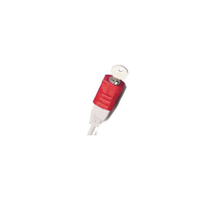 Descripción- El dispositivo es fácil de usar: basta con deslizarlo sobre las clavijas del cable y bloquearlo con la llave. |