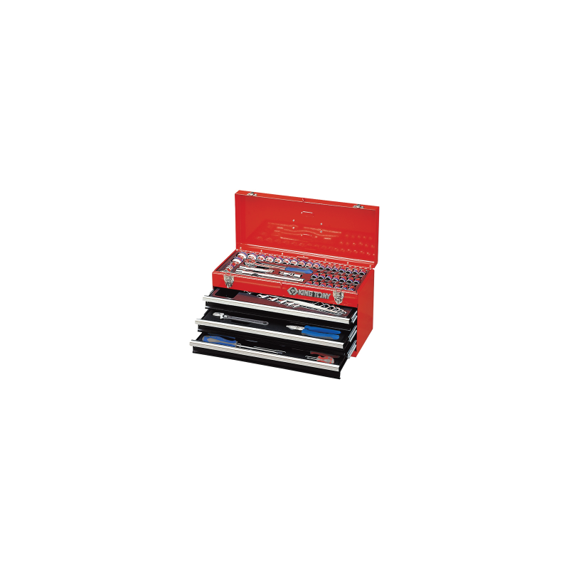 La caja de chapa con recubrimiento de polvo tiene prácticos cajones, guías de rodamiento de bolas y una cerradura central. Las herramientas están fabricadas con materiales de alta calidad: duraderos. Además, gracias al tratamiento térmico, se redujo la fragilidaddel material con el que se fabricaron y se obtuvo una dureza convenientemente elevada: se caracterizan por su resistencia a los daños mecánicos y su durabilidad. El producto King Tony es seguro, preciso y cómodo de usar. Le ayudará a realizar el trabajo con mayorrapidez, precisión y eficacia.