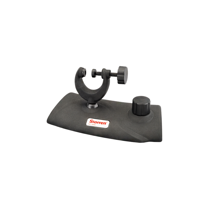 Soporte para micrómetro de exteriores Serie 3206 Este soporte convierte los micrómetros de exteriores en un robusto micrómetro de sobremesa para la inspección en serie de piezas pequeñas.