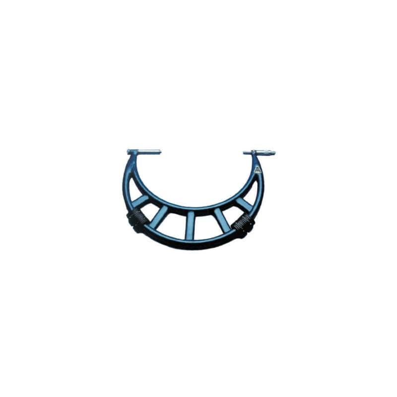 Precisión según DIN 863/1. Superficies de contacto ø 8 mm con recubrimiento de metal duro. Tornillo de paso 0,5 mm templado y rectificado,Tambour ø 18 mm y casquillo cromado mate. Palanca de bloqueo, embrague rápido. Arco tubular estable y rígido, pintado,Completo con topes (nº 2 topes por intervalo de medida).